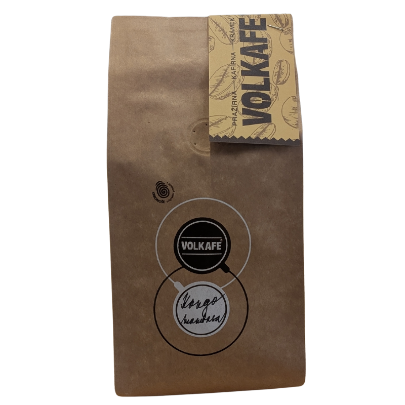 Černá jako samotné srdce Afriky, taková je 100% robusta z Konga, která překvapí jemnější kořeněnou dochutí s tónem skořice a mléčné čokolády s hořkostí meruňkových jader.