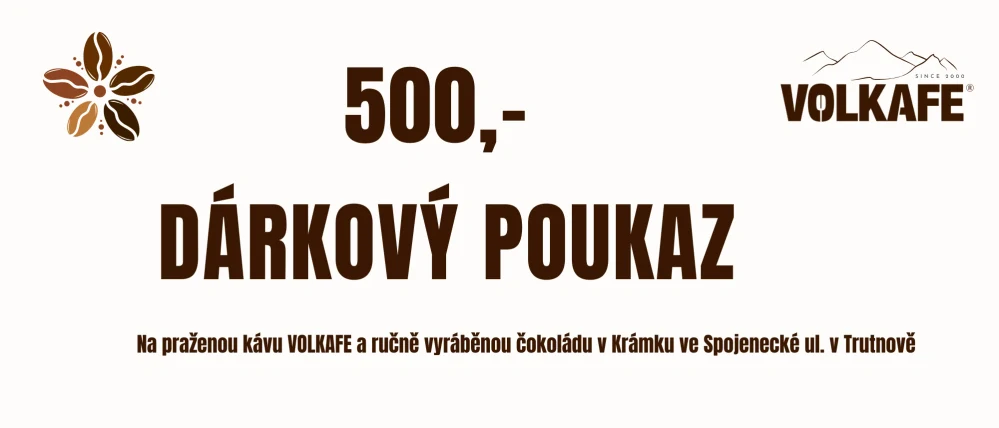 Objednejte od nás dárkový poukaz v hodnotě 500,-jako dárek a nechte výběr pražené kávy VOLKAFE nebo ručně vyráběné čokolády na dotyčném!